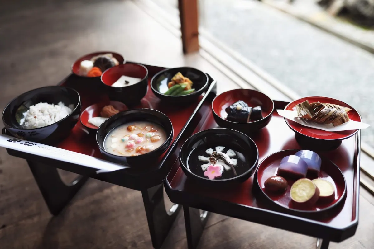 正法寺坐落在郁郁葱葱的山谷中,游客可在此享受不可多得的美食体验。在这里,您可以品尝佛教僧侣的传统素食——精进料理,食材通常有新鲜的应季香草、山中野蔬、蘑菇、豆腐和腌菜等。