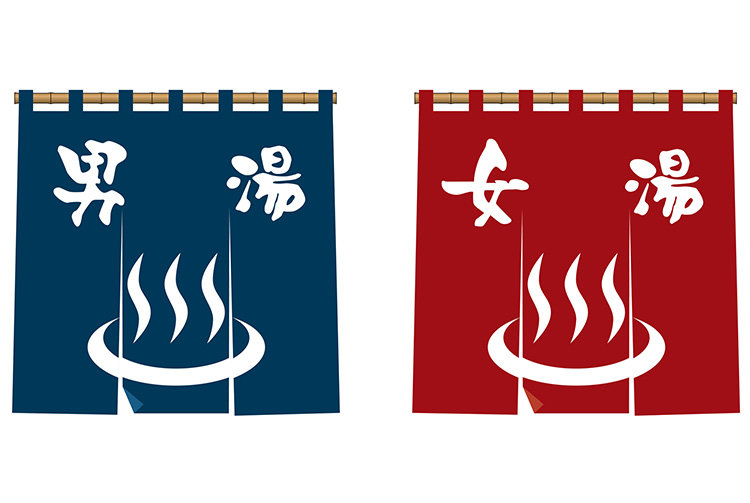 您需要留意与温泉相关的标志,因为它们可能并不明显。在日本,温泉通常由平假名字符“ゆ”表示。另一个代表温泉的标志由一个代表浴池的半圆和三条代表蒸汽的弧形竖线组成。温泉设施里通常有分别供男士和女士使用的区域,请留意日本汉字“女”和“男”。