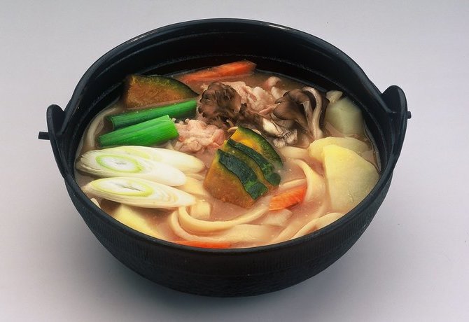 晚餐时您可以品尝名为馎饦的山梨特有料理。在这道温热的火锅料理中,扁平的面条加入味噌,再与当地的时令蔬菜一起烹煮。常见的食材包括南瓜、芋头、牛蒡根与野猪肉。