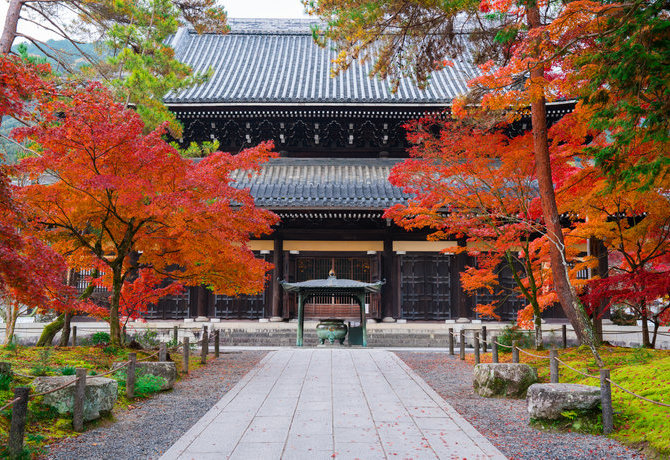 南禅寺曾是日本最重要的禅寺之一。巨大的木造三门是为了纪念在 1626 年大阪城围城中牺牲的亡者,而这场战役也确立了武将丰臣秀吉继任掌权。南禅寺较小的分寺天授庵也值得一游。何不选一家知名的汤豆腐(即豆腐火锅)餐厅享用午餐?