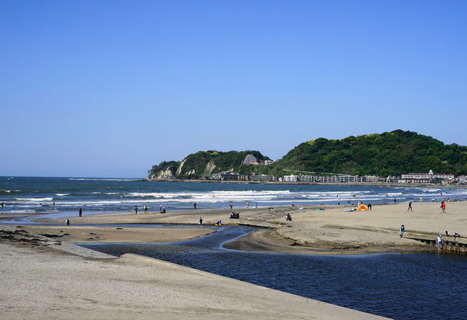 在由比滨的沙滩上结束一天的行程。这里不仅夕阳很美,天气晴朗时,还能看到富士山。此地全年都很适合游览。不过,若您在夏天光临,您还可以去由比滨观看烟火表演。
