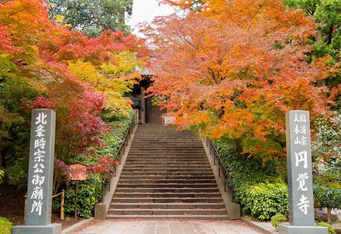 探索列为国家历史遗迹的禅寺——圆觉寺。欣赏曾出现在日本文学作品中的三门,据说从底下通过就能获得顿悟。