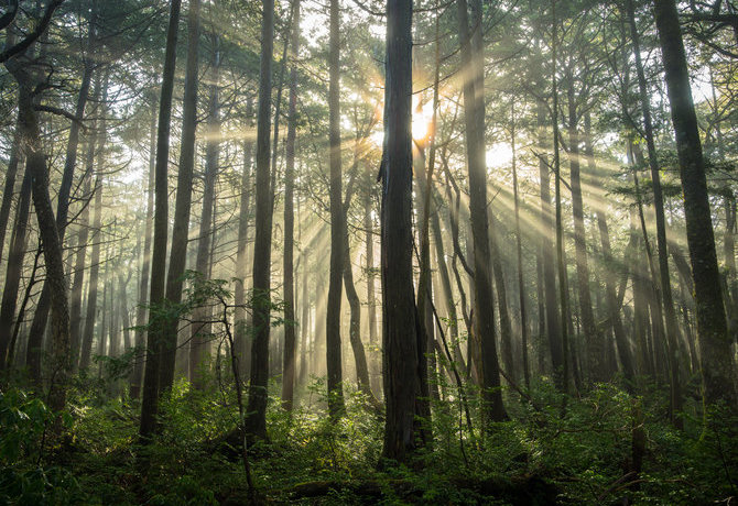 广袤的青木原在西湖附近一座高山的西北脚下,绵延不断,无数铁杉和柏木生长于熔岩高原上,许多树龄都超过 300 年。蓊郁的森林中栖息着小动物和种类繁多的鸟类。其中有多条步道和山径,供游客探索青木原。不过,过于茂密的森林很容易让人迷路,因此请不要离开步道范围。