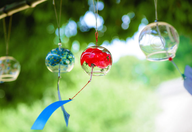 在温暖的夏季月份,通常能在日本各地看见小小的球形玻璃风铃。在筱原 Maruyoshi 风铃,客人可以打造专属于自己的独特作品。您可以学习如何为玻璃塑形,或是为预先做好的玻璃风铃上色。