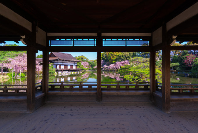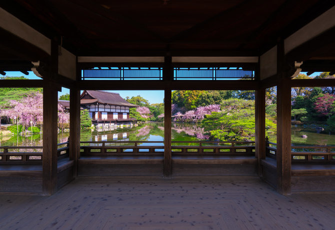 尽管是在 1895 年建成,但平安神宫的巨大红色神殿总是能让人过目不忘,因为它们是仿照原始的平安皇居设计的。神社后方是一座传统庭园,以枝垂樱闻名。神社附近还有京都市京瓷美术馆与京都国立近代美术馆。
