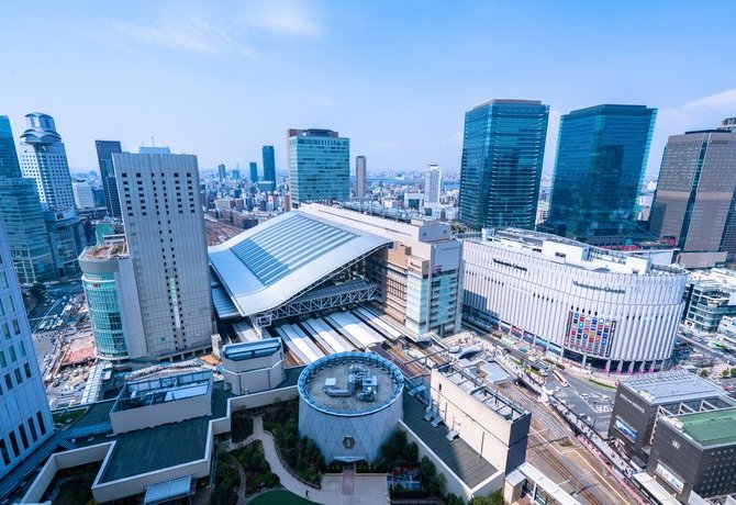 大阪车站城是一座购物及娱乐综合体,覆盖大阪站南北两侧,拥有多家商店与餐馆。若天气状况允许,不妨选一家咖啡厅或到百货公司地下美食街买上一些食物,然后到大楼的露台区一边享用,一边规划您当天的行程。
