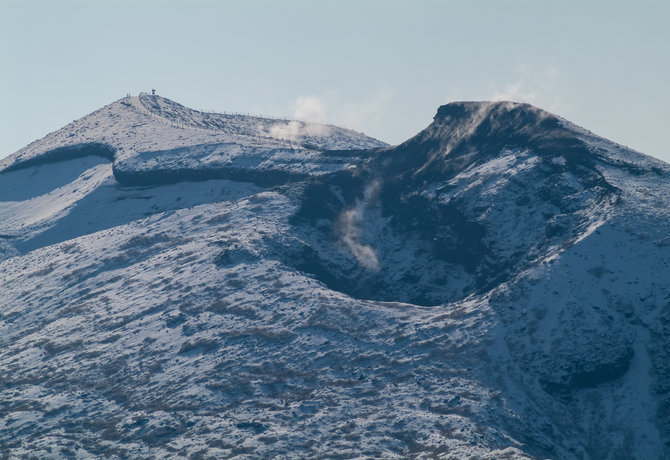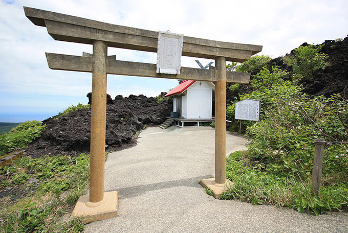 登上这座自 1986 年的大喷发后就一直沉寂的火山。接近山顶时,您会经过被奉为圣地的三原神社。