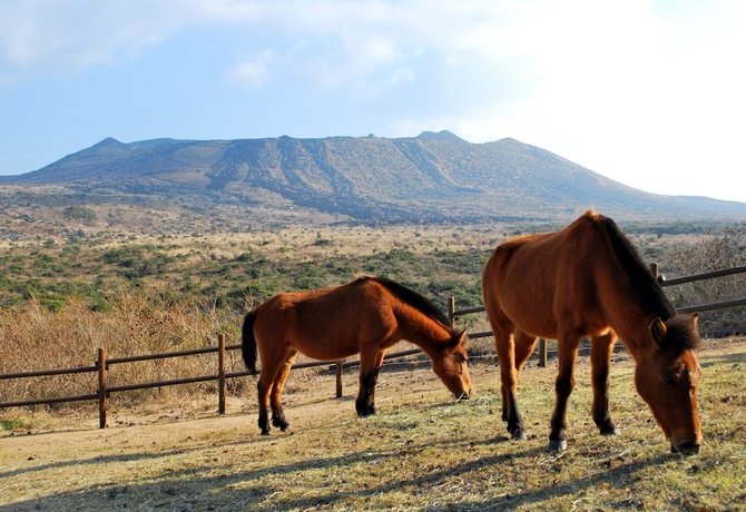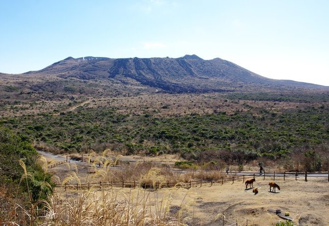 站在位于火山外围的火山口观景台,您将能欣赏到硬化的岩浆沉积物形成的荒凉地形,与远方纯净蔚蓝的海洋形成鲜明的对比。若天气晴朗,您还能远望伊豆半岛,还有遥远的富士山与箱根。