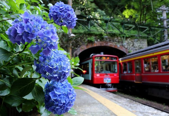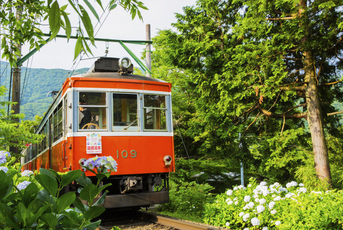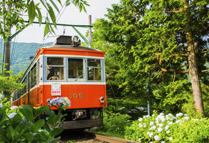 在这个地区,箱根登山线是日本景色最优美的路线之一,您可以一路沿着陡峭的山坡前进,欣赏各站之间绿意盎然的河谷。