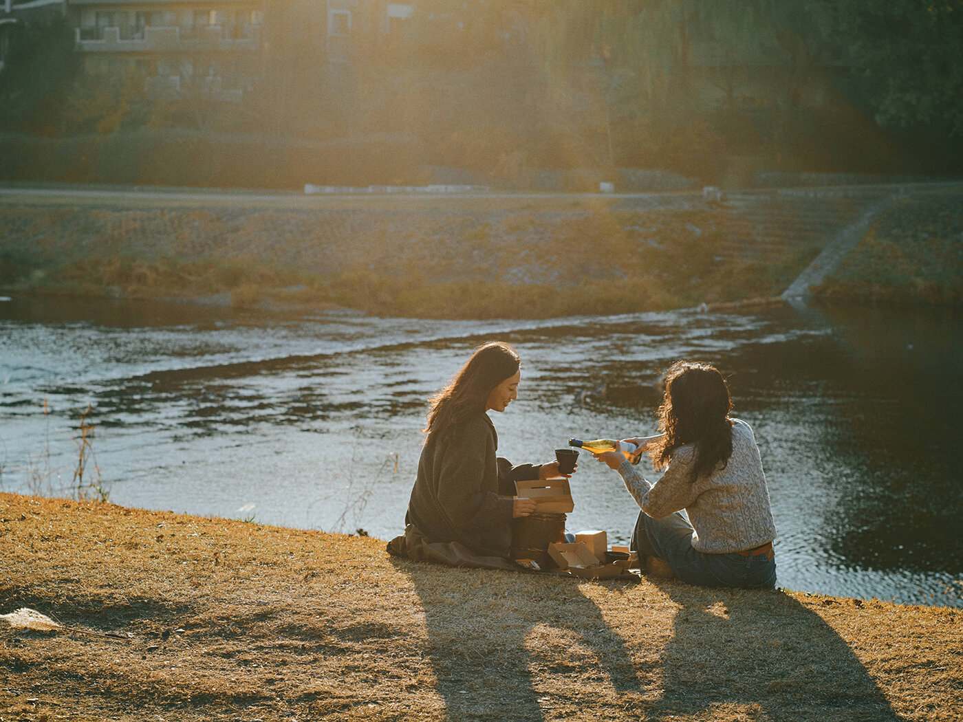 就让鸭川畔的休憩时光,为这场完整体验画上圆满的句点。首先,造访昵称“可饮用面包店”的 Mati 餐厅,选购新鲜出炉的面包、小食,再配上一瓶葡萄酒或几罐精酿啤酒。备妥野餐盒后,沿着京都象征性地标鸭川漫步而下,在草坡上与当地人一同享受宁静的野餐时光。