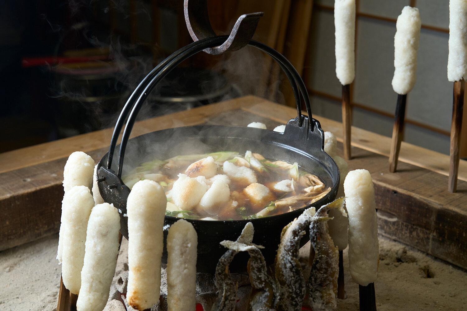 秋田犬虽是当地最具代表性的象征,但这片土地值得探寻的远不止于此。当地特色美食中不容错过的当属烤米棒:将新鲜煮熟的米饭捣制后缠绕在木签上,以明火烤制而成。外层酥脆、内里柔韧的独特口感,使其常盛于浓郁的鸡肉蔬菜火锅中,这道名为"烤米棒火锅"的料理堪称当地待客之道的代表。但这并非唯一吃法——刷上味噌后烤制的烤米棒同样美味,尽显秋田乡土料理的多重魅力。