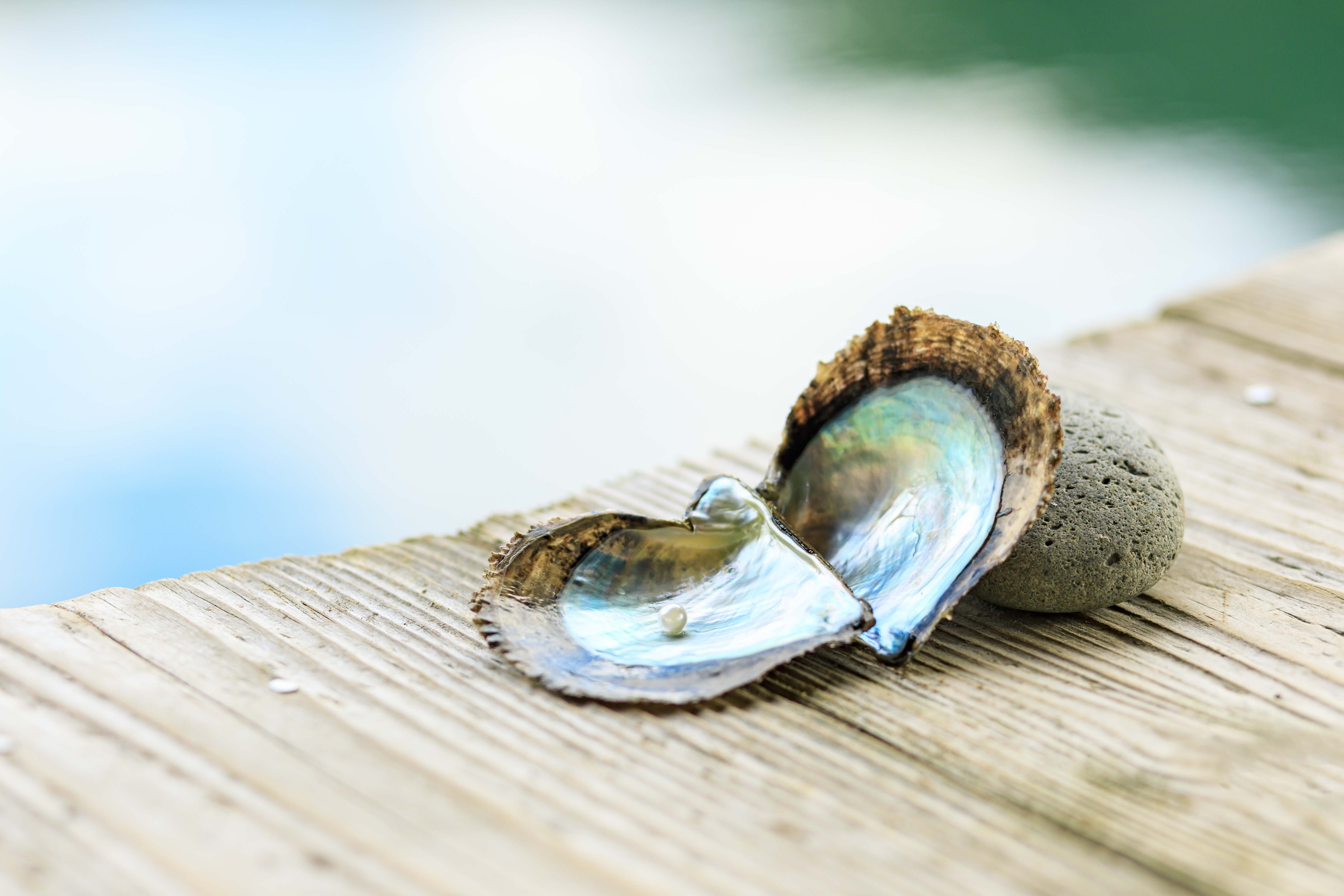打开的贝壳与取出的珍珠