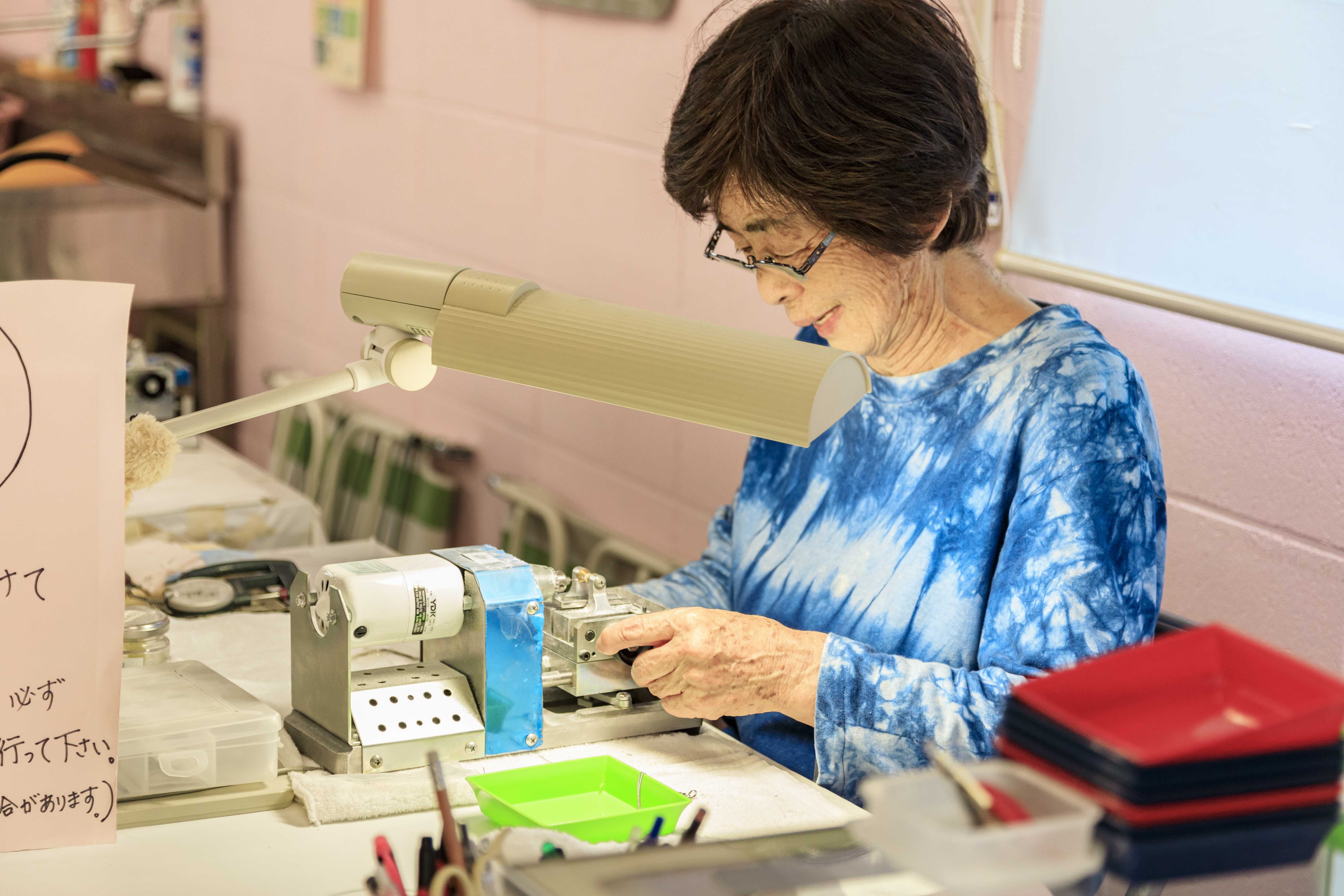 店内工作人员会为取出的珍珠打孔,以便加工成吊坠或钥匙扣
