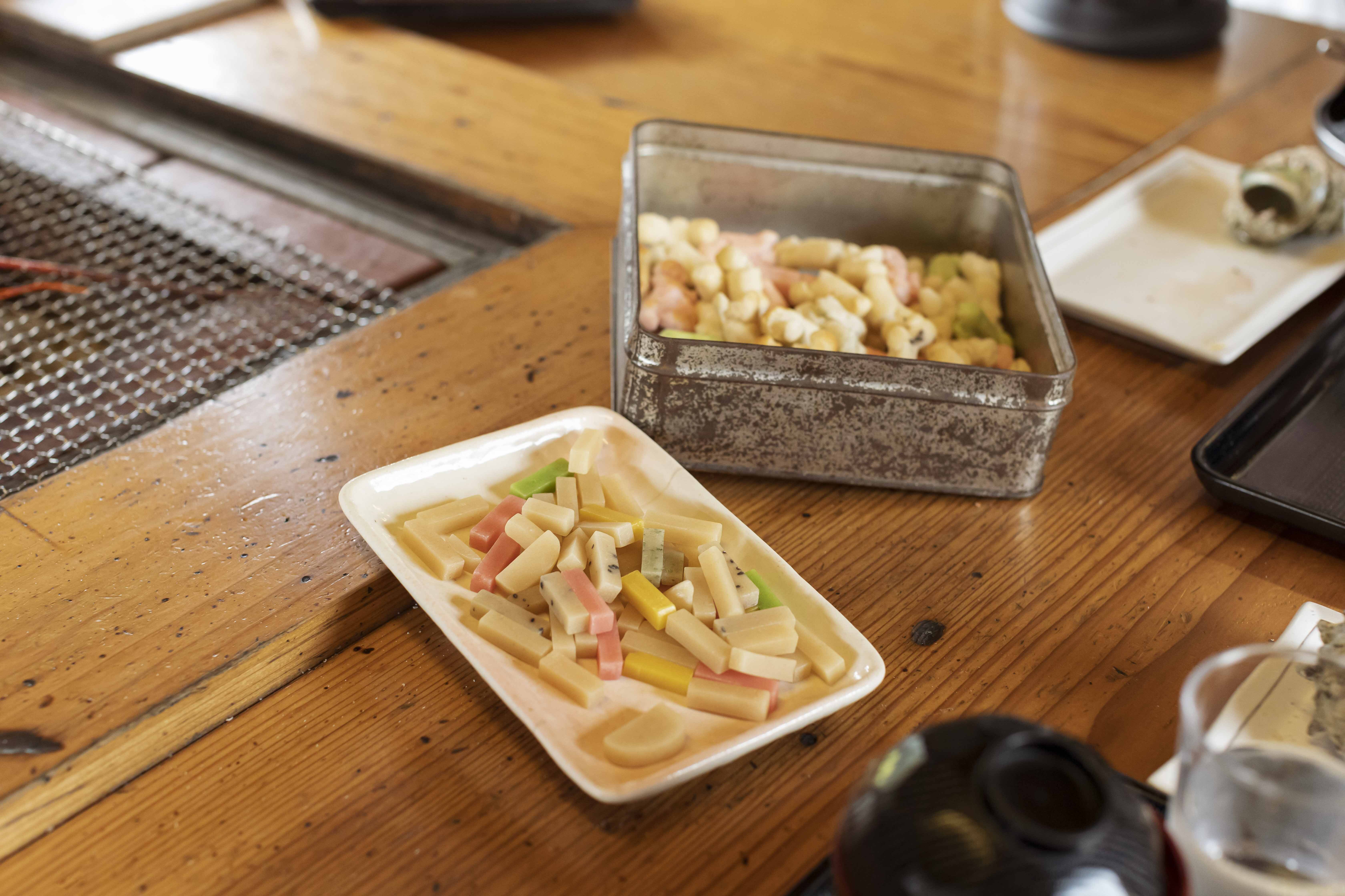 炒制前坚硬的生“米果(Arare)”