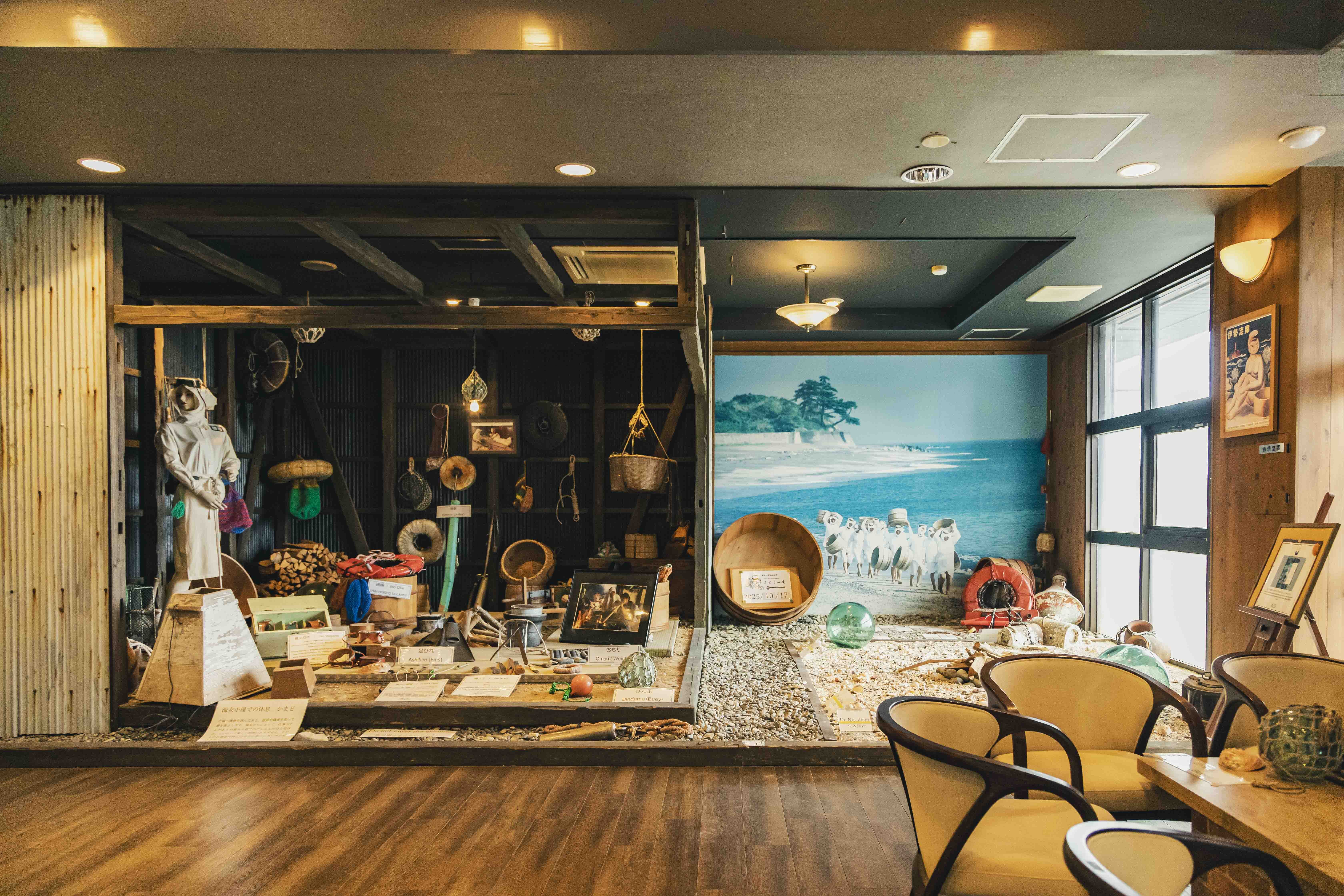 海女资料馆内还原了海女小屋原貌,还展示了海女捕捞时使用的工具等