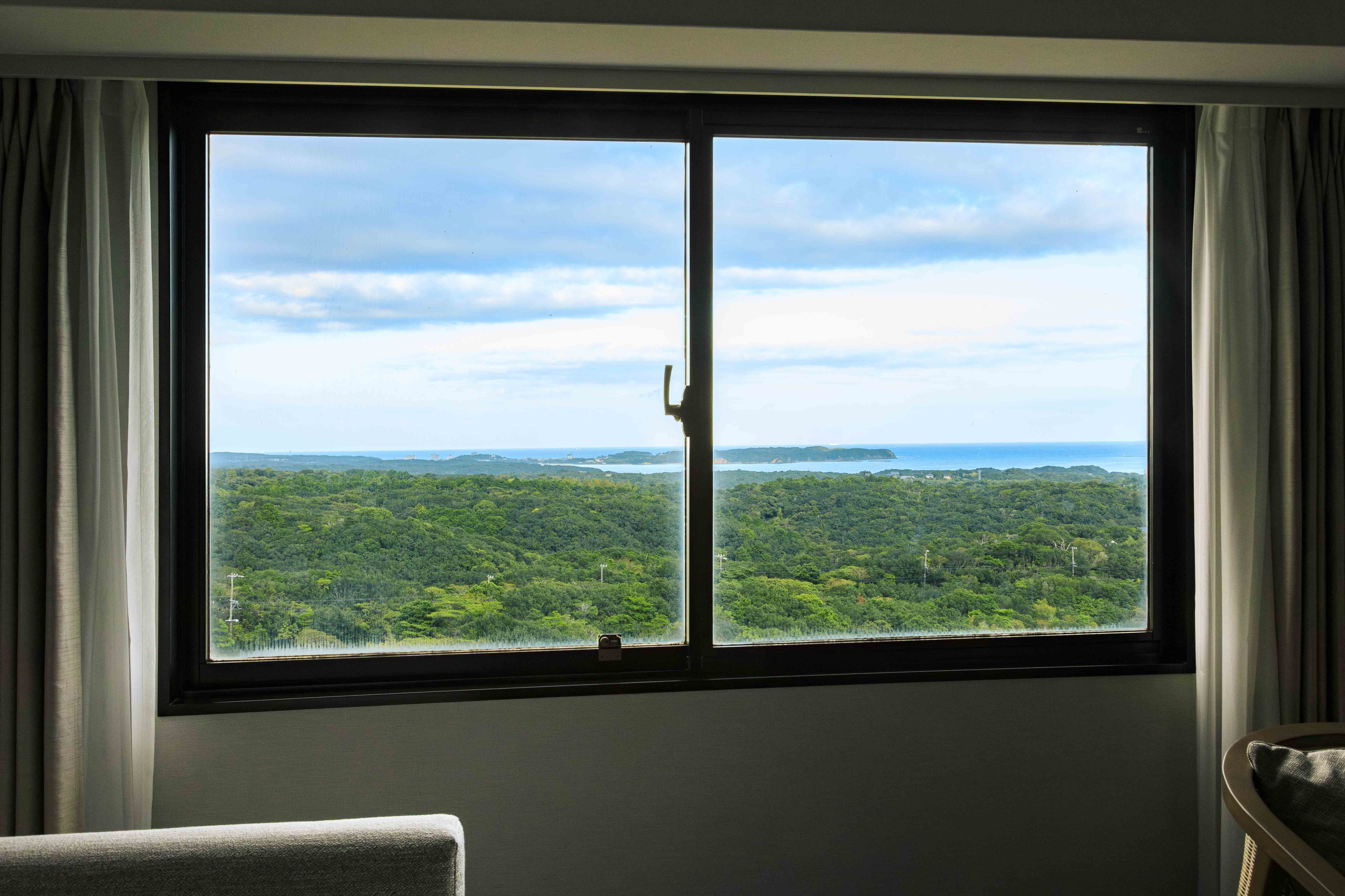 窗外延展着里亚斯型海岸的静谧蔚蓝