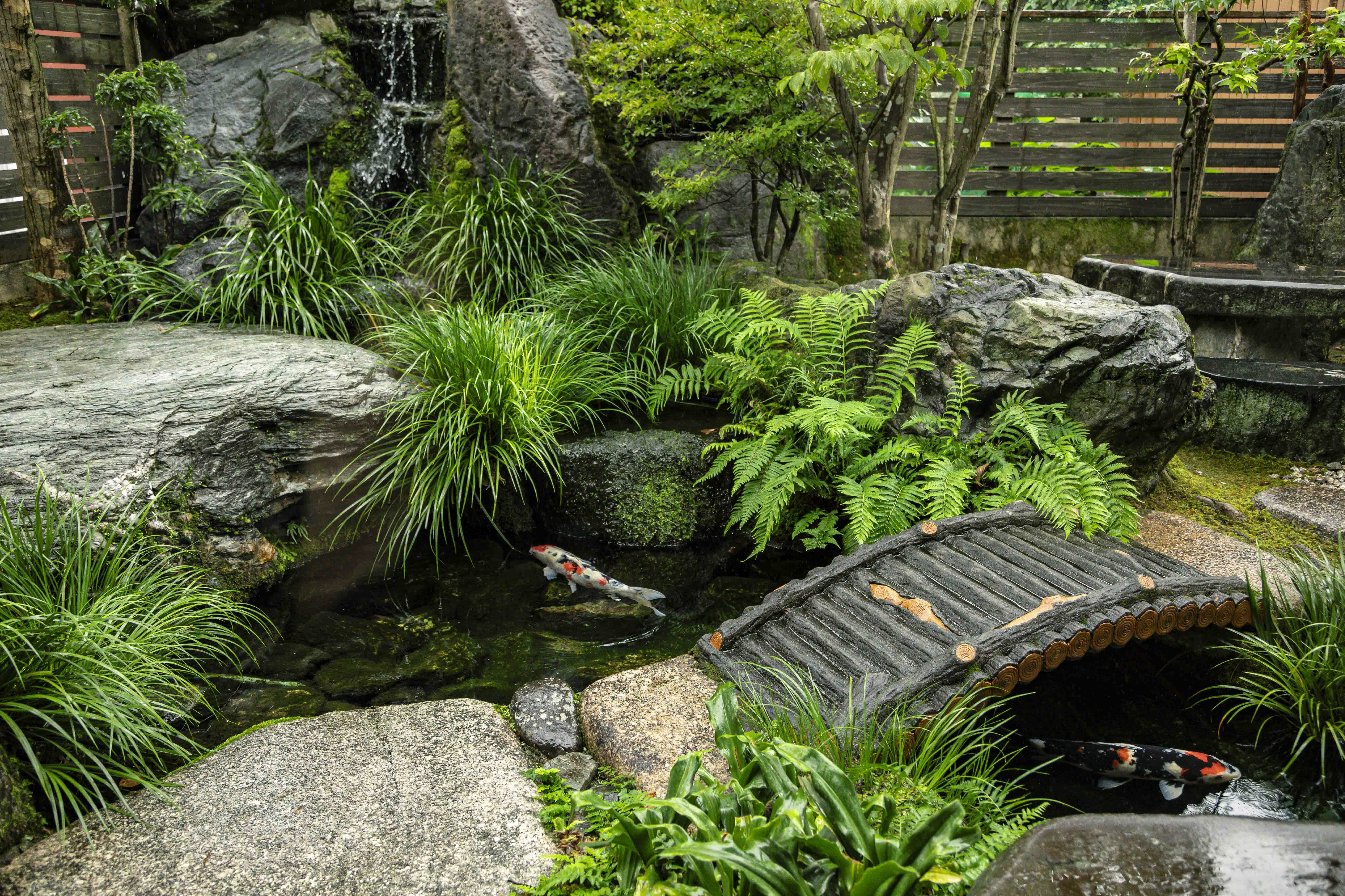 庭院池中游动的锦鲤,悠然映照着时光的流逝
