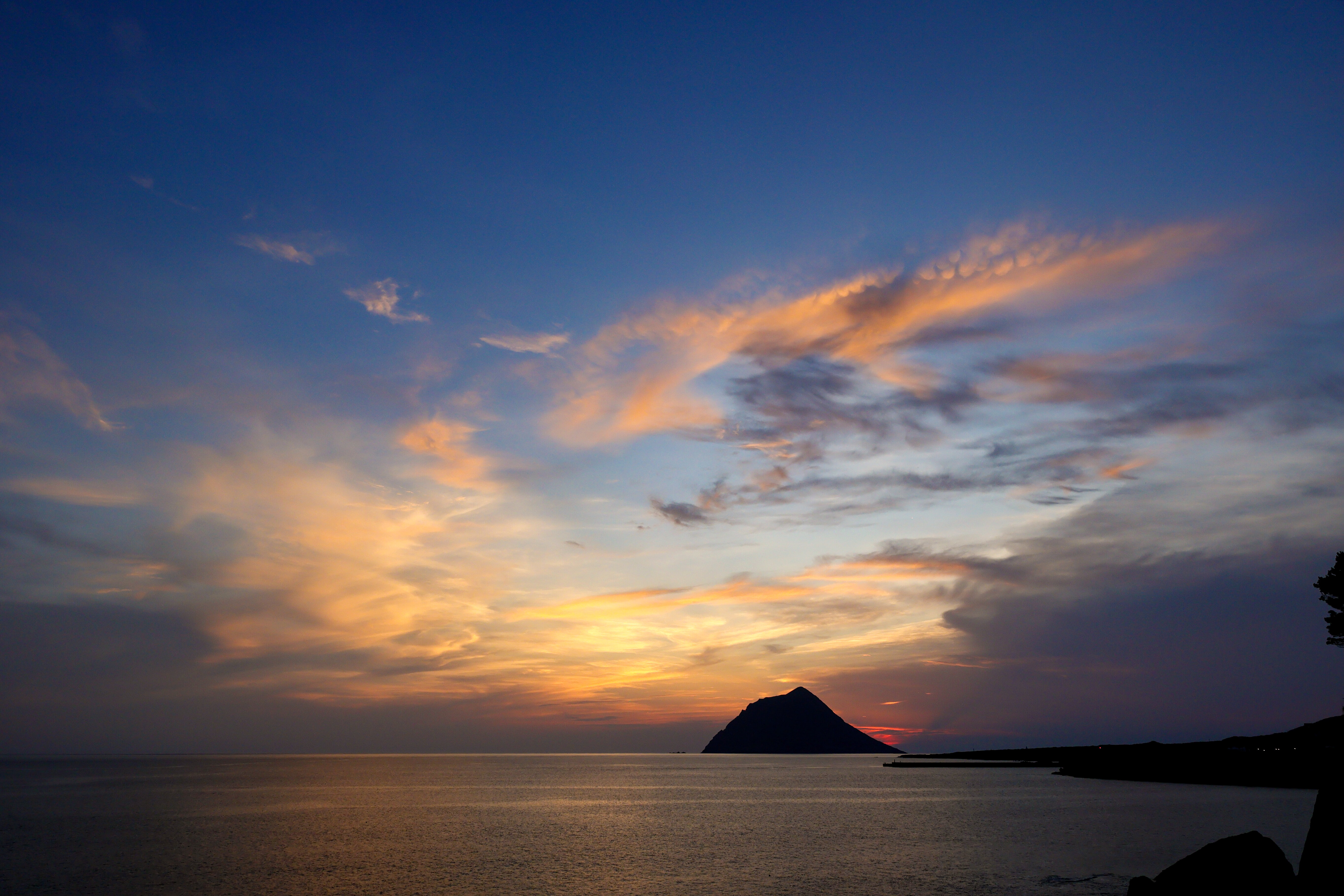 浮现于夕阳美景中的八丈小岛。静寂笼罩世界的瞬间