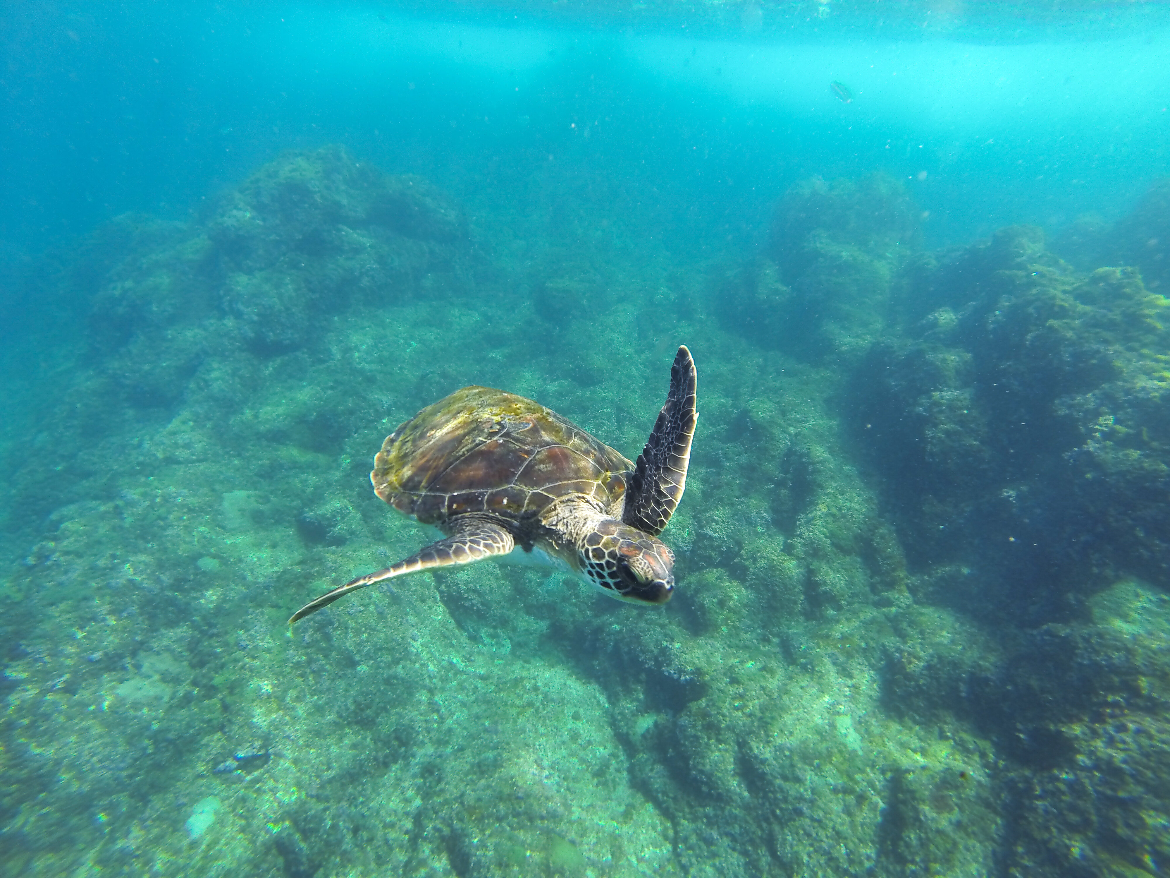 在浮潜体验中与海龟共享海中漫步