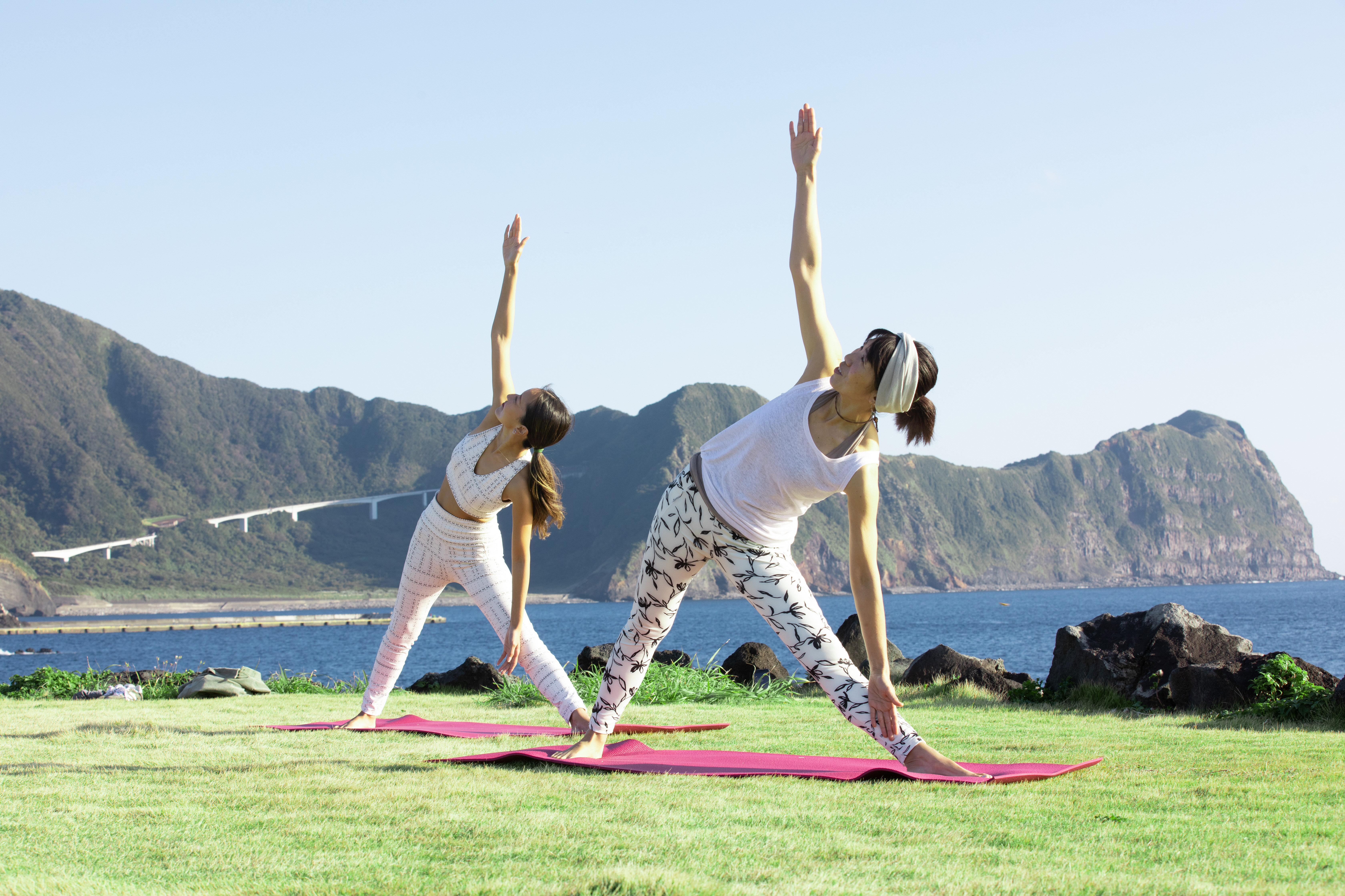 傍晚时分,在南原千叠敷的草坪广场上体验瑜伽静修。眺望着海上浮立的奇岩与八丈小岛,在涛声与海风的环抱之中深呼吸,便可以感受到身心与自然逐渐和谐。这是一日将尽时,静静回归自我的片刻时光。