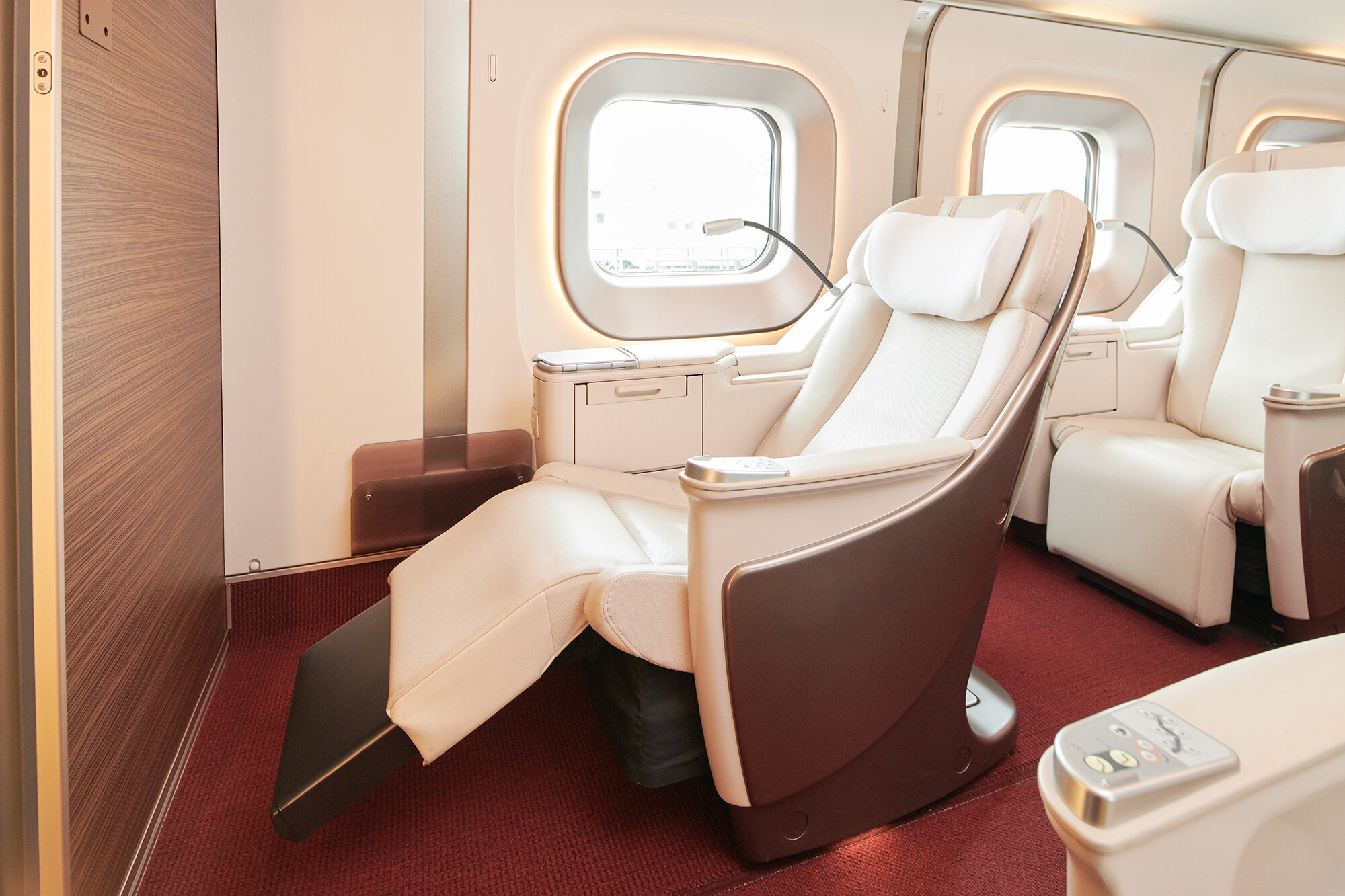 绿色车厢(一等座)座位舒适奢华,空间宽敞(图为东海道新干线列车)