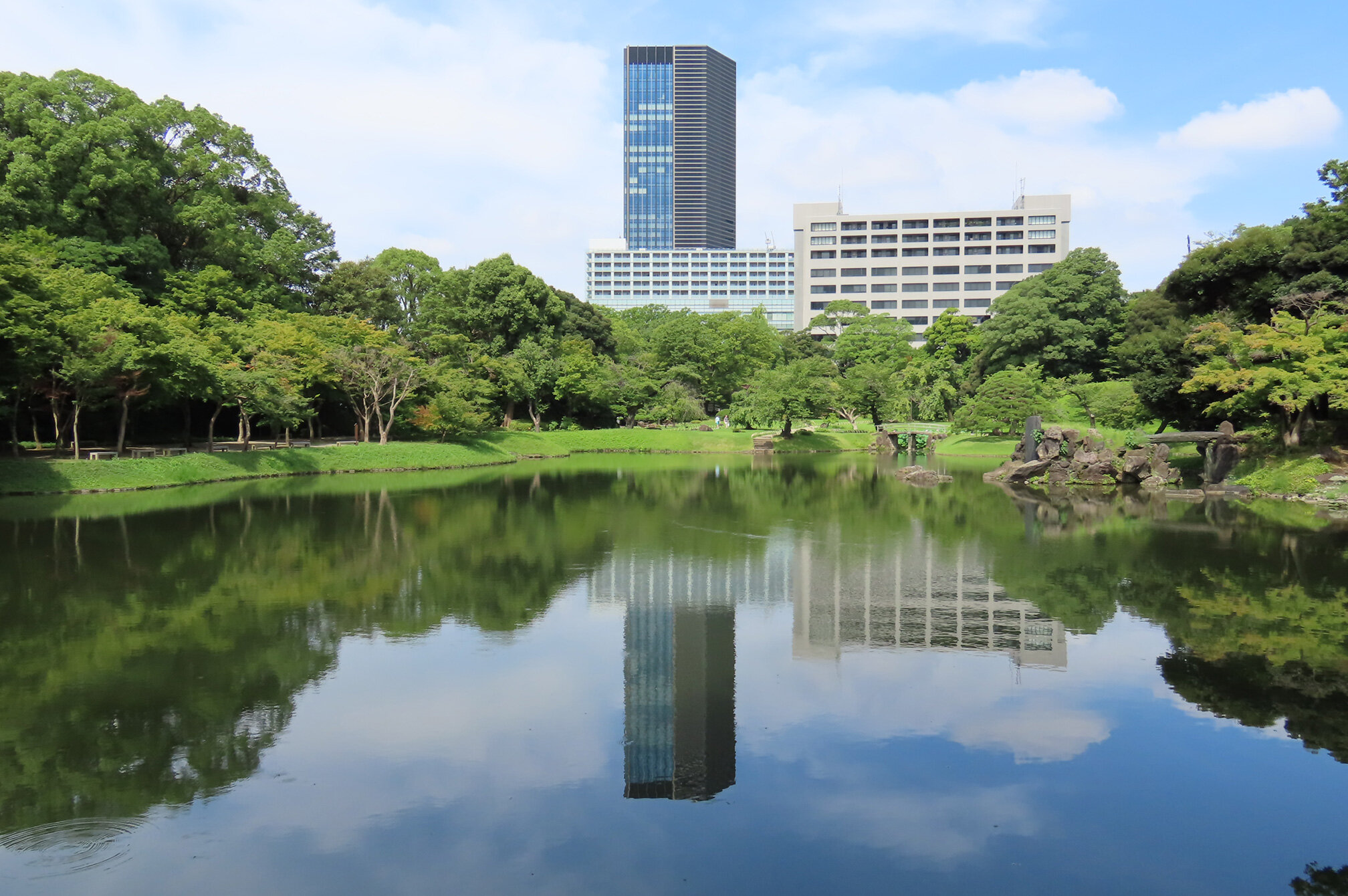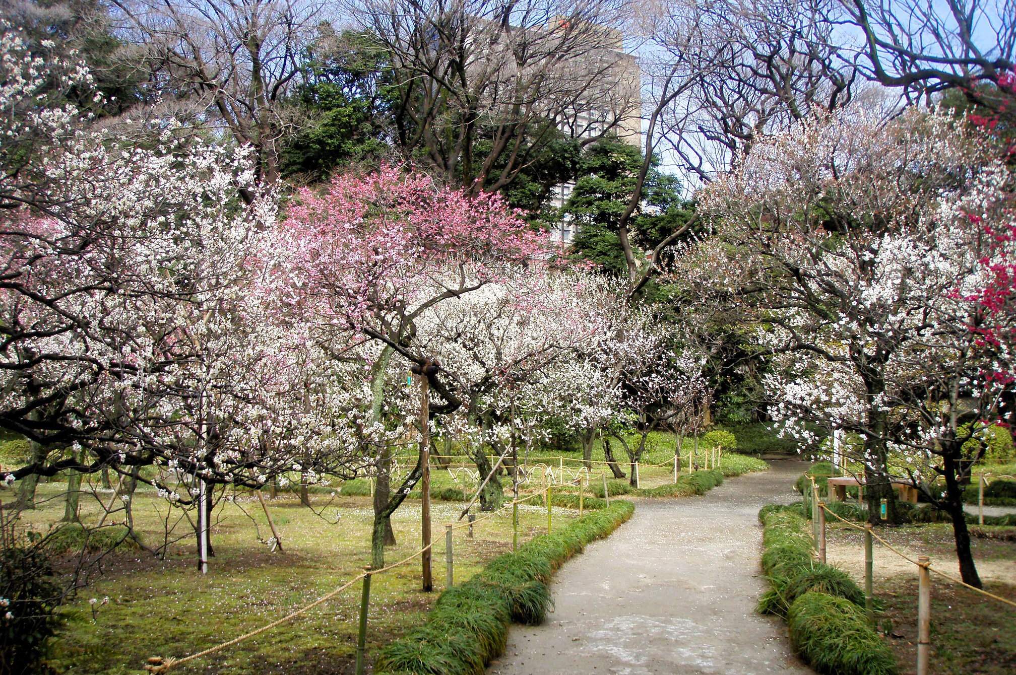 园内以中央池塘为核心,环绕着蜿蜒交错的步道。园中植栽丰富多样,四季皆具韵味,尤以早春的梅樱绽放与深秋的枫叶似火最为知名。
