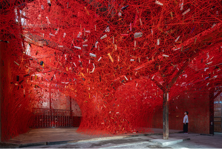 Installation view at Aichi Triennale 2022 Shiota Chiharu, Following the Line, 2022 ©︎ Aichi Triennale Organizing Committee Photo: ToLoLo studio